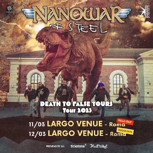 Proprio da marzo i NANOWAR OF STEEL saranno dal vivo in tutta Europa a supporto del nuovo lavoro con “Death To False Tours”: sette i concerti italiani che si concluderanno in ottobre con l’evento “Nanowar Of Steel & Friends – 20 Years Of Steel” all’Alcatraz di Milano a celebrare i primi vent’anni di carriera della band.