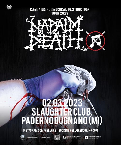 I Napalm Death, che avrebbero dovuto raggiungerci questo febbraio per un’unica data allo Slaughter Club di Paderno Dugnano, porteranno con sé la loro miscela micidiale – più il nuovo singolo «Narcissus», uscito lo scorso anno – a marzo 2023, per una serata a dir poco strappaossa a cui si uniranno degli opener che non vediamo l’ora di confermare. Tenetevi pronti.