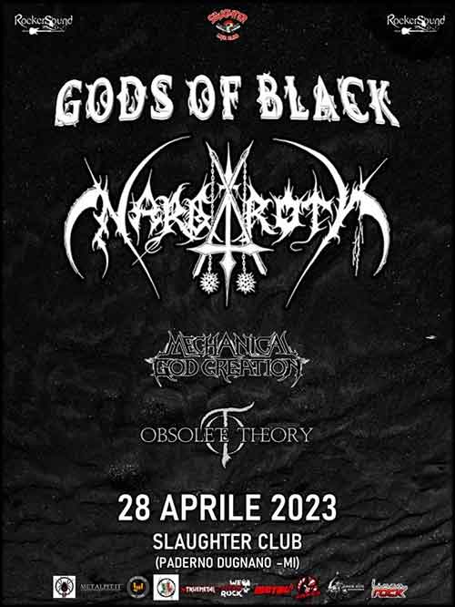 I Naragaroth saranno spalleggiati in apertura dagli Obsolete Theory e poco dopo dai Mechanical God Creation.