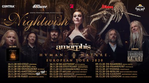 I Nightwish annunciato il suo nono lavoro in studio “Human. :II: Nature”, in uscita il 10 aprile 2020 su Nuclear Blast, e sarà un doppio album contenente nove tracce sul CD principale e un lungo brano diviso in otto capitoli sul secondo CD, fanno sapere proprio oggi che i connazionali Amorphis saranno di spalla al tour che la band terrà in autunno, insieme ad un’altra band finlandese, i Turmion Kätilöt.