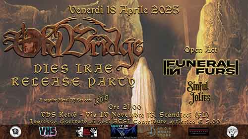 Venerdì 18 aprile al VHS Retrò di Scandicci Firenze, gli Old Bridge pubblicheranno dopo cinque anni dall’uscita di “Bless the Hell”, il nuovo album “Dies Irae” distribuito dalla Black Widow Records, in uscita proprio il 18 aprile su tutte le piattaforme digitali e in formato fisico. Sul palco del VHS Retrò insieme a loro ci saranno in apertura Sinful Jolies e Funeral In Furs, a seguire ìl metal set di Legio DJ.