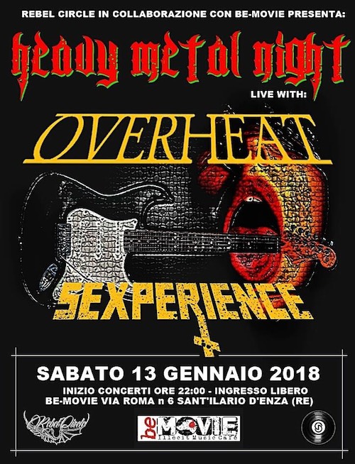L’evento organizzato dallo staff Rebel Circle e avrà come di consueto il nome Rebel Circle Night. Vedrà avvicendarsi sul palco: Overheat & Sexperience. A seguire dj Andrea fino alla chiusura.