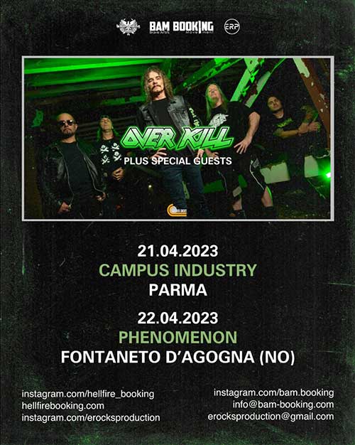 Gli Overkill e il loro sound senza mezzi termini passeranno per l’Italia per due date sconvolgenti questo 2023: