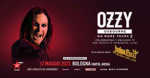 Le date 2022 del tour di Ozzy Osbourne, con special guest Judas Priest, saranno riprogrammate nel 2023. La data italiana prevista l’8 febbraio 2022 all’Unipol Arena di Bologna è riprogrammata al 12 maggio 2023.