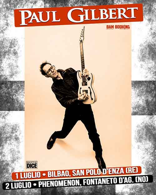 Bam Booking annuncia che Paul Gilbert, chitarrista e fondatore di Mr. Big e Racer X sarà protagonista di due concerti i prossimi 1 e 2 luglio, rispettivamente al Bilbao di San Polo d’Enza (RE) e al Phenomenon di Fontaneto d’Agogna (NO).