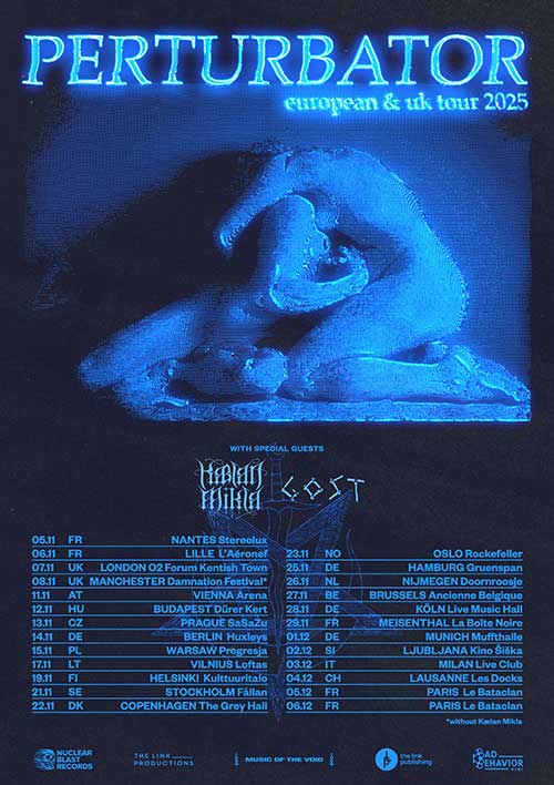 Più avanti quest’anno, PERTURBATOR intraprenderà un tour da headliner nel Regno Unito e in Europa, che lo vedrà esibirsi nei suoi locali più importanti fino ad oggi, tra cui Londra, l’O2 Forum Kentish Town nel Regno Unito e due serate al Bataclan di Parigi. A dicembre anche in Italia.