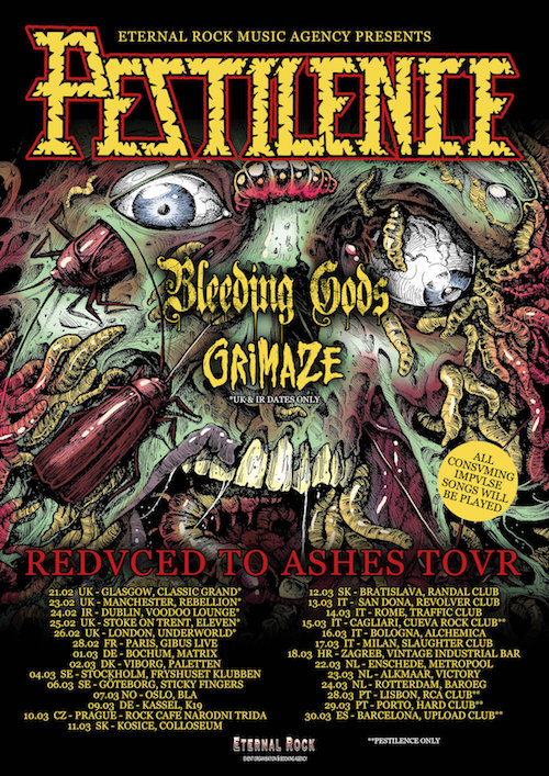 I Pestilence si faranno accompagnare nel loro “Redvced To Ashes Tovr” dai Bleeding Gods. Il tour prevede anche quattro date in Italia: San Donà di Piave (VE), Roma, Bologna e Milano. I dettagli sono di seguito.