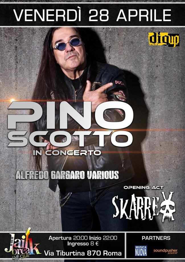 In arrivo il grande show di Pino Scotto, ad aprire gli Skarrex e Alfredo Gargaro, che con i suoi musicisti presenterà il suo primo lavoro da solista, Various.