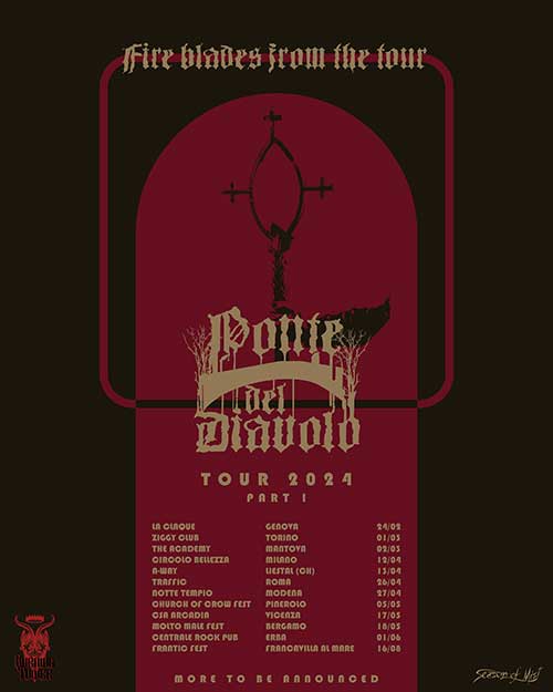 I maestri italiani del doom metal e della dark wave, i PONTE DEL DIAVOLO, sono pronti a intraprendere un affascinante viaggio attraverso l’Italia con l’annuncio del loro tour per l’uscita del nuovo album “Fire Blades From the Tomb”.
