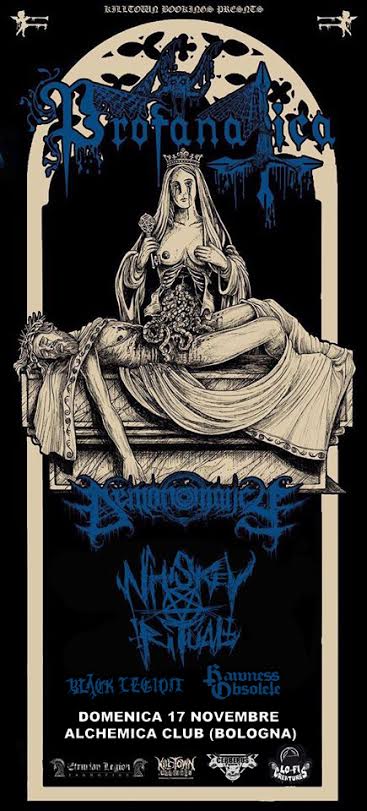 Ad aggiungersi ad una già consolidata formazione di attacco che capitanata dai PROFANATICA, appena usciti con il nuovo album “Rotting Incarnation of God”, ci saranno: DEMONOMANCY, WHISKEY RITUAL, BLACK LEGION e RAWNESS OBSOLETE.