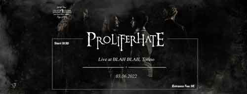 Una data da segnare in rosso sul calendario. Dopo due anni di stop forzato a causa dell’evento pandemico, la death metal band di Torino Proliferhate, riparte dagli eleganti portici della loro città per un concerto evento che fungerà da link tra passato e futuro.