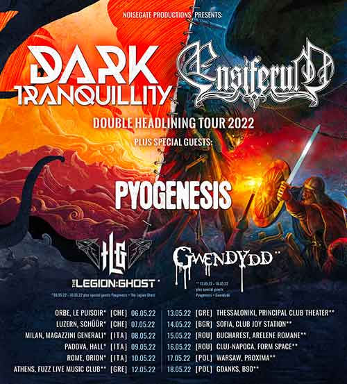 I tedeschi Pyogenesis saranno a supporto del tour di Dark Tranquillity e Ensiferum, entrambe le band saranno headliner, che attraverserà il continente nel prossimo maggio. Altri due ospiti nel tour oltre ai Pyogenesis, The Legion:Ghost e Gwendydd.