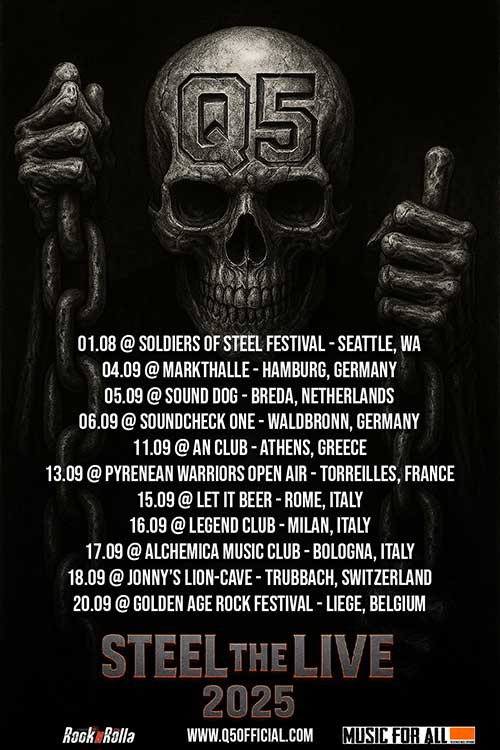 In occasione delle 3 date italiane dei Q5, che toccheranno il nostro paese il 15 /16 /17 settembre ecco gli orari e i gruppi spalla che divideranno il palco con la band americana: