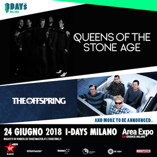 Si arricchisce il cast di I-DAYS 2018 all’AREA EXPO – Experience Milano, dopo l’annuncio dei Pearl Jam, The Killers e Liam Gallagher, si aggiunge lo straordinario appuntamento del 24 giugno con il meglio del rock internazionale: Queens Of The Stone Age e The Offspring. Un’occasione unica e da non perdere per vederli insieme in Italia, in esclusiva solo per I-DAYS!