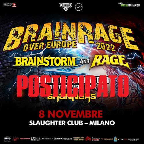 Con estremo rammarico siamo costretti a comunicare che lo show dei RAGE, previsto per domani 08 novembre, presso lo Slaughter club di Paderno Dugnano, è da considerarsi posticipato. Le condizioni di salute in cui si trova il frontman Peter “Peavy” Wagner, anche se in ripresa, non consentono il regolare svolgimento dello spettacolo.