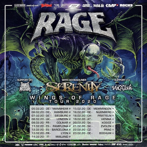 A dicembre i Rage terranno tre concerti inGermania e poi alla fine di gennaio ecco il tour di supporto a “Wings Of Rage” che toccherà anche l’Italia il 14 febbraio a Milano.