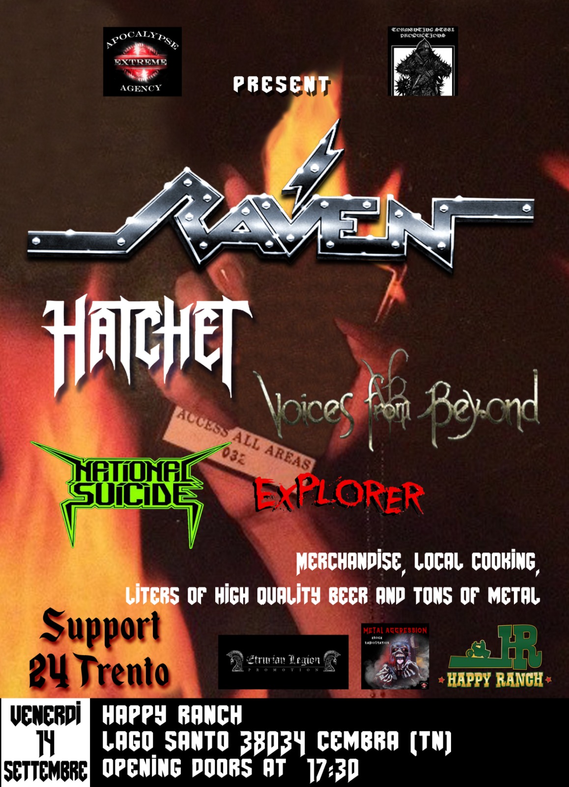È tutto confermato per il concerto della prima tappa del tour italiano dei RAVEN, previsto per venerdi 14 settembre presso l’ Happy Ranch di Cembra (TN).