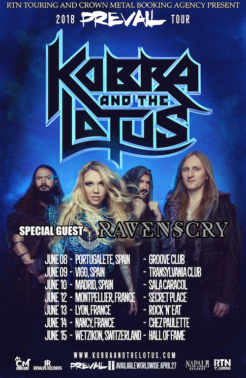 Crown Metal Booking Agency annuncia che saranno i Ravencry la band di supporto per tutto il Prevail Tour Europe 2018 con i KOBRA AND THE LOTUS! I Ravenscry nel 2017 hanno pubblicato il loro terzo album intitolato “THE INVISIBLE” un concept album che parla di Coral, un’assistente bibliotecaria che parte alla ricerca delle sue origini, ma non tutto è ciò che sembra e Coral stessa nasconde un segreto che può sfuggire al primo ascolto, ma che viene rivelato nel finale del disco.