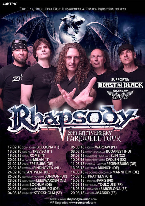 RHAPSODY “20th Anniversary Farewell Tour” – Europa con BEAST IN BLACK, SCARLET AURA