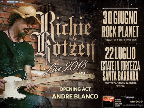 Il ritorno nel nostro Paese del virtuoso musicista sarà arricchito della presenza del cantautore nostrano Andre Blanco. Due gli appuntamenti, il 30 giugno 2018 al Rock Planet di Pinarella di Cervia (RA) e il 22 luglio 2018 alla rassegna ‘Estate in Fortezza Santa Barbara’ presso la Fortezza Santa Barbara di Pistoia, quest’ultimo appuntamento è organizzato in collaborazione con Fondazione Firenze Radioterapia Oncologica.