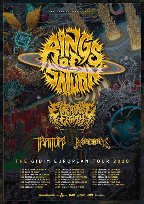 I maestri dell’alien tech-death RINGS OF SATURN hanno pubblicato il loro ultimo sensazionale album “Gidim” due settimane fa su Nuclear Blast (recensione qui). La band è ora lieta di annunciare il suo ritorno in Europa a febbraio e marzo 2020 per 23 date, insieme a ENTERPRISE EARTH, TRAITORS e BRAND OF SACRIFICE.
