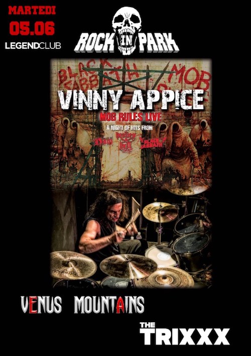 La serata sarà in questo modo articolata: inizio show ore 21.00, in apertura The TriXXX, trio rock amante del surf, filosofia, natura, magia. Spiriti liberi caratterizzati da melodie avvolgenti, chitarre magiche, un groove caldo e grande energia live. Saranno presenti anche i Venus Mountains dalla rodata esperienza internazionale e con un sound caratterizzato da forti distorte chitarre, riff empatici, densi intrecci di basso e batteria con l’aggiunta della grezza voce ruvida e graffiante. Headliner sarà, come detto, la Vinny Appice Band che proporrà l’intero l’album “Mob Rules” dei Black Sabbath, classici di DIO e brani degli Heaven & Hell.