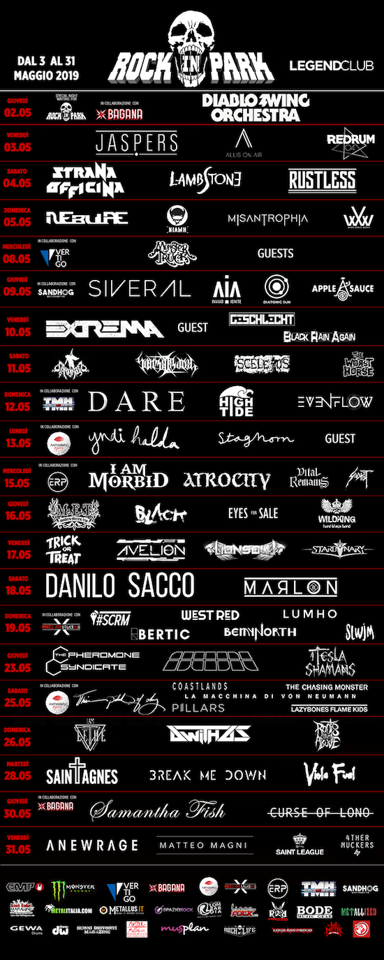 Quando si pensa a maggio, ormai, in automatico, si pensa al Rock In Park ! Anche quest’anno, per l’intero mese, andrà in scena il festival che dà spazio all’’underground italiano, ma anche a tante realtà consolidate del panorama internazionale. Una programmazione ricca e variegata, che vi terrà compagnia dal 3 al 31 maggio, con un’ulteriore novità!!! RockNRoll Radio sarà media partner dell’evento, trasmetterà in diretta ed intervisterà gli ospiti durante le serate!