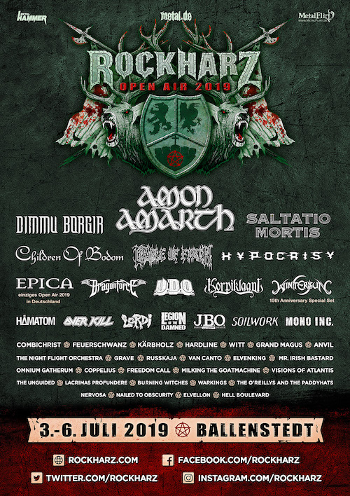 Gli organizzatori del RockHarz continuano a riempire il cartellone dell’edizione del 2019. L’evento si svolgerà a Ballensted in Germania, tra Magdeburgo e Lipsia, tra il 3 e il 6 luglio e vede già le conferme di Dimmu Borgir, Amon Amarth, Cradle Of Filth, Children Of Bodom e tanti altri, raggiunti ora anche dai seguenti: