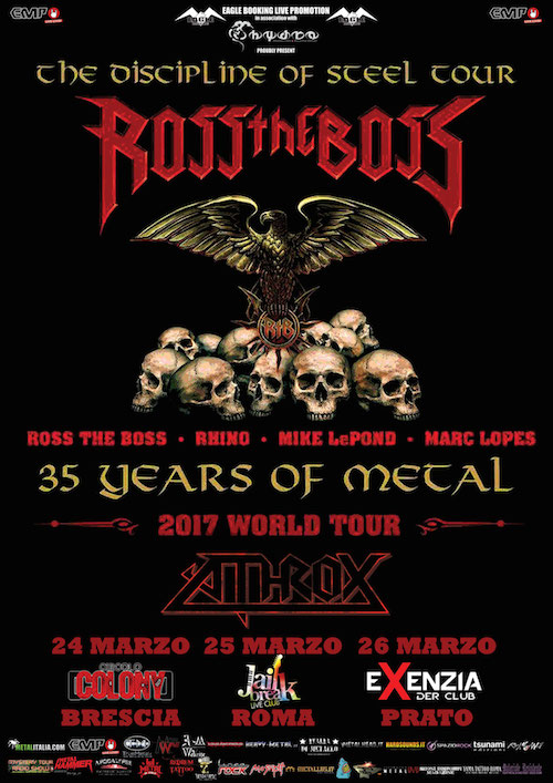 Saranno gli ATHROX, heavy metal band toscana, a seguire ROSS THE BOSS in occasione delle date italiane dedicate ai primi album dei Manowar ed ai suoi 35 anni di onorata carriera.