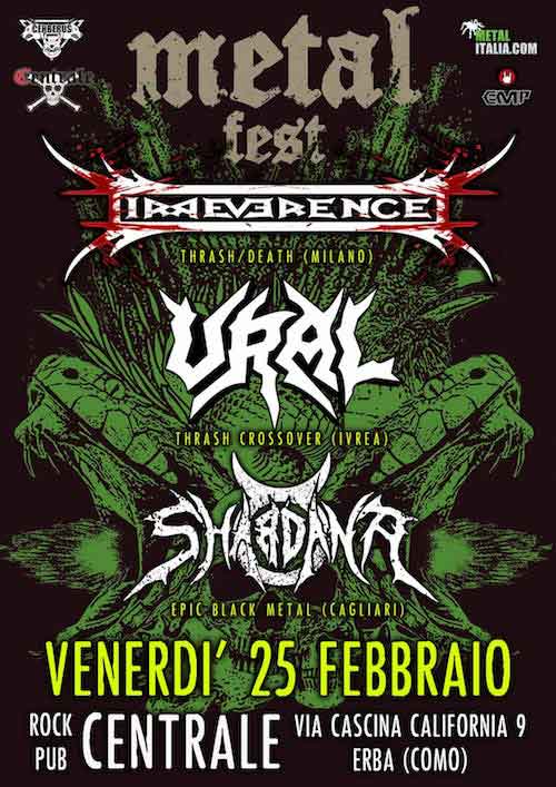 Una serata per gli amanti dell’adrenalina e dei ritmi veloci, quella prevista per venerdì 25 Febbraio al Centrale Rock Pub di Erba. Sul placo dello storico locale ci saranno 3 band provenienti da varie parti d’Italia e a capo di un bill di tutto rispetto troveremo i thrasher IRREVERENCE, alle prese con le date a supporto dell’ultimo Ep “Scapegoat”, uscito lo scorso anno via STF Records