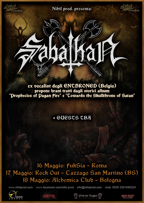 Siamo lieti di presentare per la prima volta in Italia l’ex vocalist storico, degli ENTHRONED, che con la formula già rodata ed apprezzata da molti all’estero. Infiammerà i palchi italiani con dell’old school Black Metal suonando brani tratti dai seminali album “Prophecies of Pagan Fire” e “Towards the Skullthrone of Satan” che hanno reso celebre la band belga.
