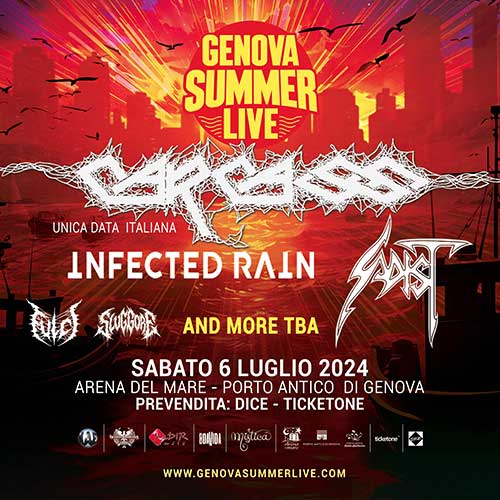 I Sadist, freschi di ristampa del primo masterpiece “Above the Light” in edizione limited vinile, vanno quindi ad arricchire il già prestigioso cast del nuovo festival genovese, che il 6 Luglio vedrà alternarsi all’interno della suggestiva cornice dell’Arena Del Mare in Porto Antico, tra gli altri, Carcass (in un’unica data italiana), Infected Rain, Fulci, Slug Gore, ed altre band che verranno annunciate a breve.