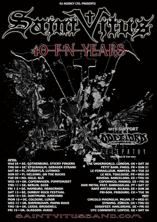 I Saint Vitus saranno in tour nel nostro continente tra aprile e maggio. La band intanto ha terminato le registrazioni del nuovo album, atteso per questo imminente 2019 per la Season Of Mist. la band sarà supportata dai Dopelord.