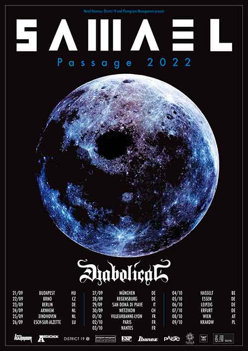 District 19 presenta il Passage 2022 European Tour dei Samael, precedentemente posticipato, con la partecipazione di Diabolical per i mesi di settembre e ottobre,. Nelle date del tour, di seguito, presente anche l’Italia con un concerto al Revolver di San Dona’ di Piave (VE) il 29 settembre.