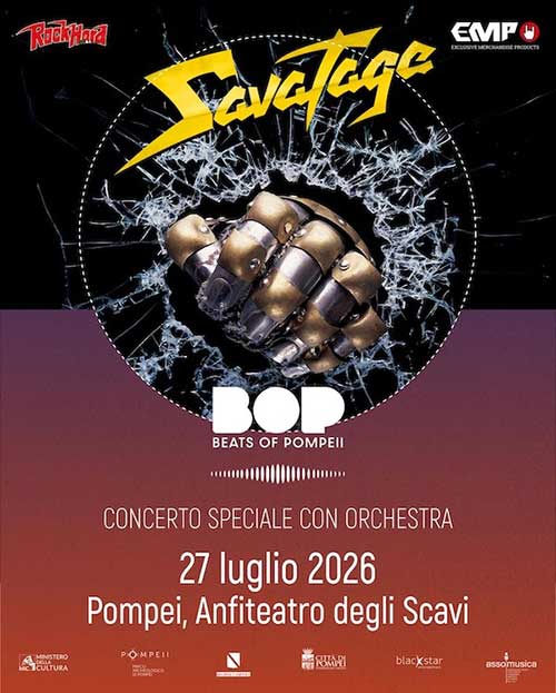 Appuntamento anche in Italia e il 27 luglio: Savatage si esibiranno nel leggendario Anfiteatro degli Scavi di Pompei (NA), in occasione della terza edizione di B.O.P. – Beats of Pompeii 2026.