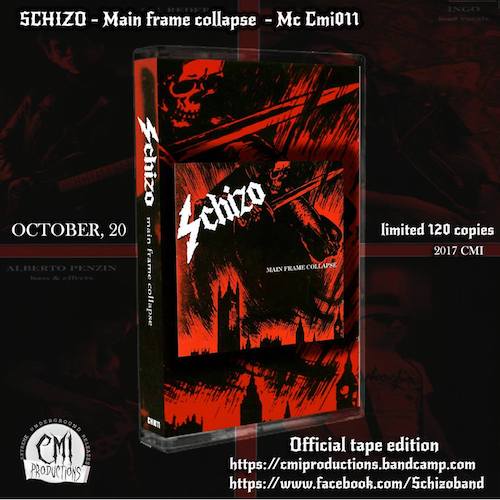 A ventotto anni dalla sua uscita, l’italiana CMI Productions ristampa per la prima volta in tape, lo storico disco che nel 1989 dalla lontana Sicilia fece scuotere l’intero panorama thrash metal internazionale, MAIN FRAME COLLAPSE dei leggendari SCHIZO.