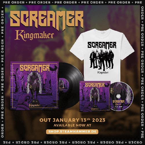 È il loro entusiasmo, l’intensità fisicamente tangibile delle loro canzoni e la loro spinta irrefrenabile che ha sempre contraddistinto gli Screamer dagli altri artisti. La band svedese che ruota attorno al cantante Andreas Wikström beneficia senza fine della straordinaria energia del gruppo in combinazione con la scrittura di canzoni stimolanti e diversificate. Questo mix ha già prodotto quattro album in studio e una registrazione dal vivo dal 2011 in poi. L’ultima offerta degli Screamer, “Kingmaker”, è prevista per il 13 gennaio 2023. Come i suoi predecessori, “Kingmaker” brilla con una vasta gamma di canzoni dal bacino di utenza del classico heavy metal, il tipo che è stato parte integrante delle nostre vite sin dai primi anni ’80. Allo stesso tempo, Henrik Petersson promette l’album più maturo e mirato della sua band, dicendo: ” ‘Kingmaker’ ci ha fatto affinare ancora di più il nostro stile distintivo per far emergere l’essenza dei nostri forti più forti”.