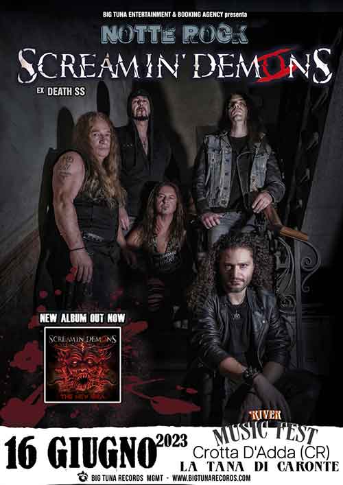 Big Tuna Entertainment & Booking Agency & Street Survivors Agency presentano il release party della metal band italiana Screamin’Demons. L’appuntamento è per il 16 giugno 2023 alla notte rock del Music River fest, organizzato alla Tana di Caronte, locale estivo di Crotta D’Adda (Cremona). La band poi intraprenderà un tour in ottobre prossimo.