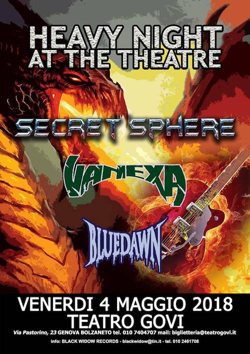 La Black Widow Records e la Cornucopia Agency sono liete di annunciare un evento speciale portando tre bands Heavy Metal sul palco del prestigioso Teatro Govi di Bolzaneto.