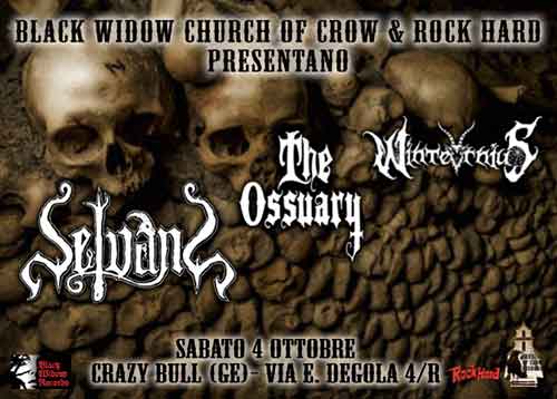 Black Widow Records, Church Of Crow & Rock Hard Italy uniscono le forze per presentarvi questo magnifico evento con SELVANS, THE OSSUARY e WINTERNIUS a Genova il 4 ottobre.