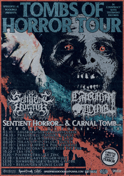 I Sentient Horror, death metal band del New Jersey, intraprenderà un tour in Europa dal 4 ottobre, ad Augsburg in Germania. Il tour farà anche tappa in Italia a Milano ed Erba (CO). Con i Sentients anche i tedeschi Carnal Tomb che completeranno il “Tombs Of Horror Tour”.