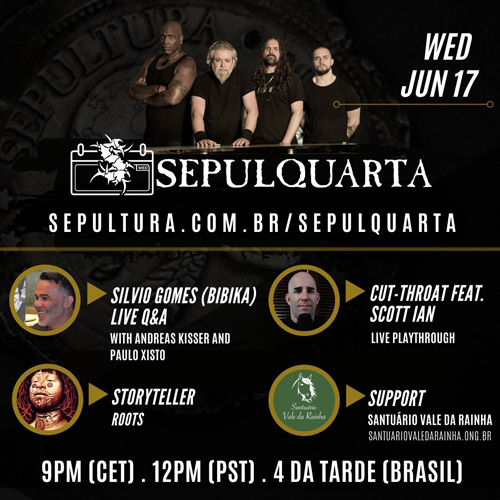 Andreas commenta: “Silvio Gomes è il mio tecnico della chitarra e tecnico in studio della band fin dagli esordi. Ha partecipato all’intero processo di registrazione di ‘Roots’ e ci ha accompagnati in tour, compresa l’ultima data con Max alla Brixton Academy. Parleremo di quel periodo. Inoltre sono molto felice di avere come ospite anche il nostro fratello e idolo Scott Ian che suonerà ‘Cut-Throat’! L’ha già suonata con noi diverse volte prima d’ora e mercoledì presenteremo questa esclusiva versione della canzone. Godetevi SepulQuarta!”.