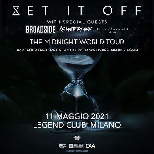 I Set It Off, accompagnati da Broadside e Cemetery Sun, torneranno fra noi per un’unica data l’11 maggio, quando le situazione sarà più tranquilla. Non mancate!