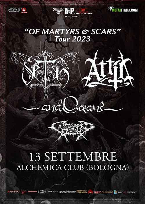 Il 13 settembre sarà il giorno dell’unica data italiana del tour “Of Martyrs & Scars”che porterà nel nostro paese Seth, Attic e …And Oceans. per quel giorno si annuncia che i Cuttered Flesh prenderanno il posto dei Bloodphemy nel ruolo di opener per la data di questo tour che si svolgerà all’Alchemica Music Club.