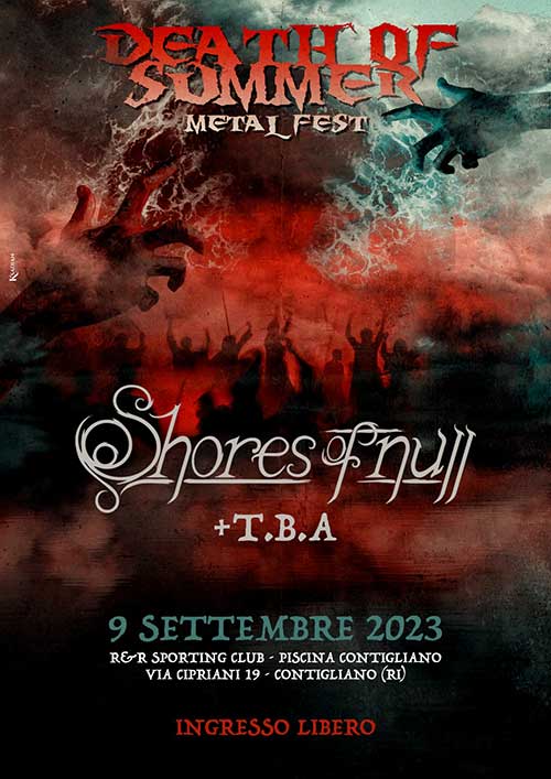 La terza edizione del Death of Summer Metal fest, il festival dedicato alle realtà del metal underground nazionale, si terrà il 09 Settembre a Contigliano (RI) e vedrà come headliner gli SHORES OF NULL, una delle realtà più valide emerse dalla scena metal tricolore, capaci di fondere aggressività e melodia, cadenze gothic-doom e deflagrazioni death.