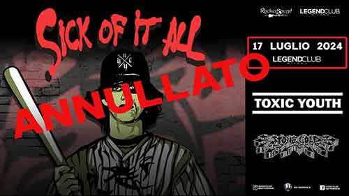 Rocker Sound Agency & Legend Club Milano sono dispiaciuti nel dover comunicare la cancellazione della data dei Sick Of It All, al Legend Club Milano, del 17 luglio 2024.