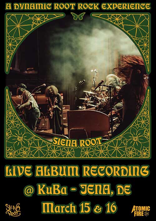 I SIENA ROOT spiegano: “Assicuratevi di far parte del nostro prossimo album dal vivo! Lo show sarà registrato dal vivo e questa è la vostra occasione per essere sul disco insieme alla band. Come di consueto per i SIENA ROOT, il concerto sarà registrato analogicamente su nastro, catturando il momento per quello che è, un’impronta musicale indelebile. Per questa occasione speciale ci esibiremo al nostro amato KuBa di Jena [Germania], dove abbiamo suonato innumerevoli concerti memorabili nel corso degli anni. Inoltre, porteremo sul palco musicisti ospiti spettacolari per rendere il viaggio musicale di questa serata speciale ancora più accattivante. Questa sarà una serata da non perdere, sarà davvero un’occasione rara perché cattureremo il suono che è stato usato in tutti i nostri dischi finora. Una registrazione live in puro analogico è qualcosa di molto raro al giorno d’oggi e oseremmo dire che nessun’altra band riesce a fare qualcosa di simile attualmente!”.