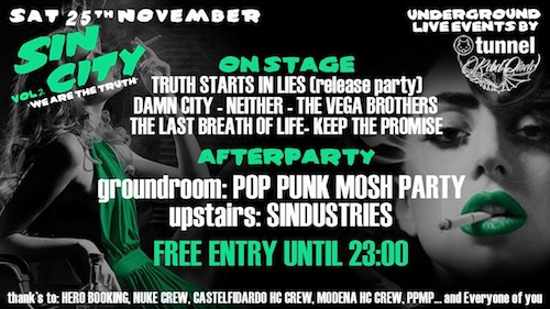 Dalla voglia comune di riportare a Reggio Emilia eventi live alternativi di Rebel Circle e Circolo Arci Tunnel nasce SIN CITY LIVE EVENTS