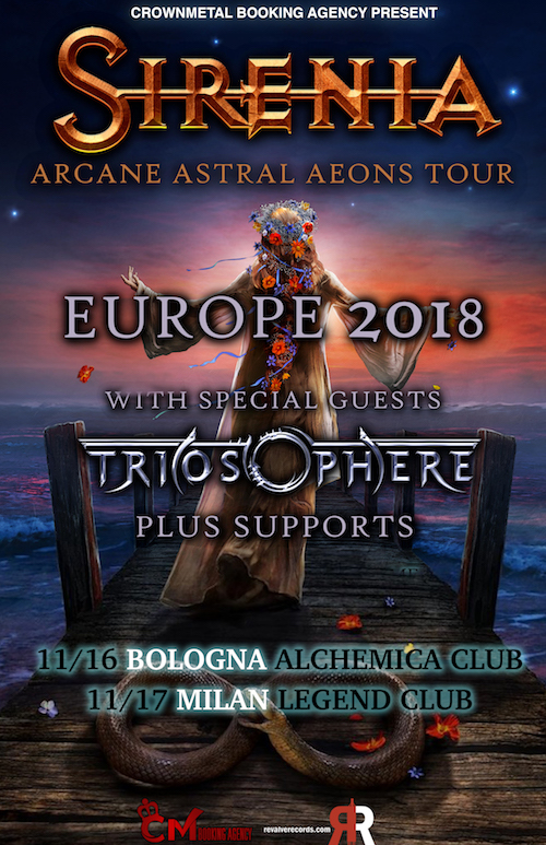 Arrivano in italia da Headliner per due esplosive date i Sirenia la band norvegese capitanata da Morten Veland, la pubblicherà il nuovo album “Arcane Astral Aeons” il 28 Ottobre per Napalm Records, la prima data sarà il 16 Novembre a Bologna all’Alchemica Music Club, poi il 17 novembre sarà la volta di Milano al Legend Club.