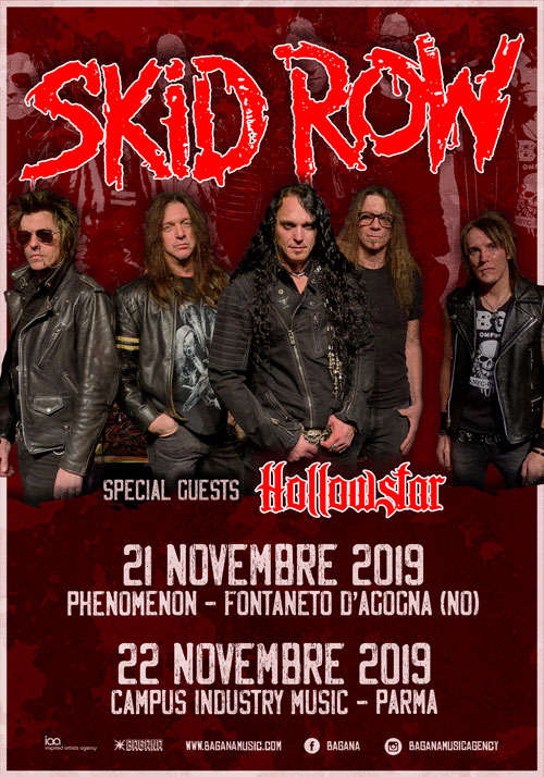Due appuntamenti per il colosso hard & heavy SKID ROW, che sarà in Italia giovedì 21 novembre al Phenomenon di Fontaneto D’Agogna (NO) e venerdì 22 novembre al Campus Industry Music di Parma.